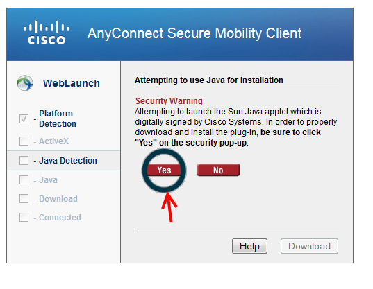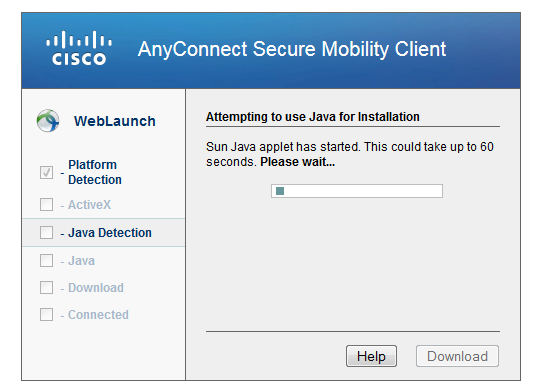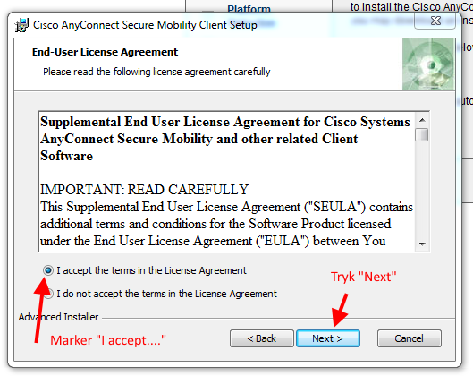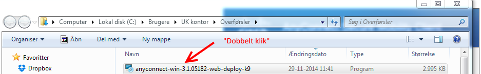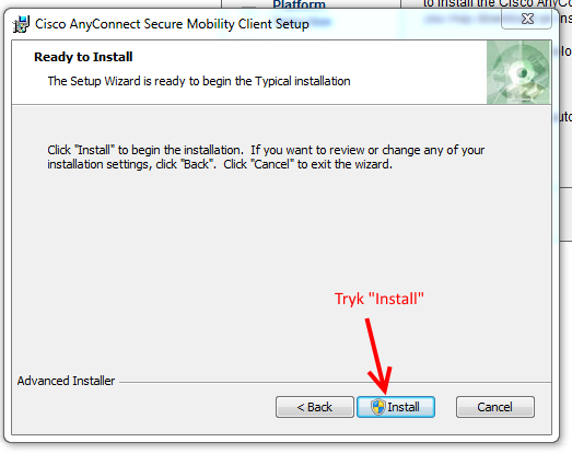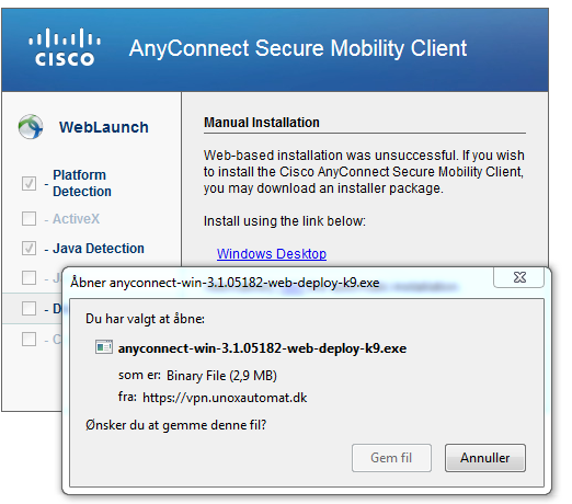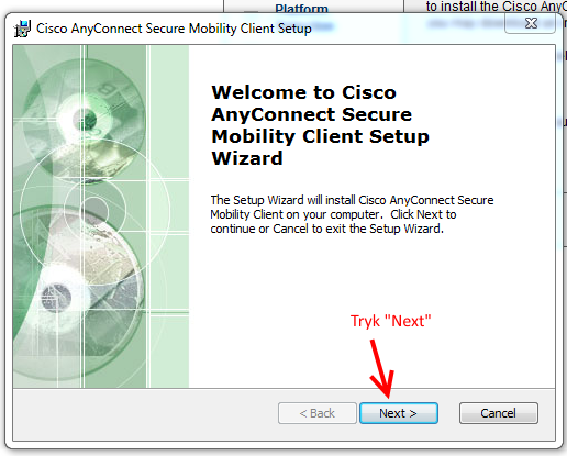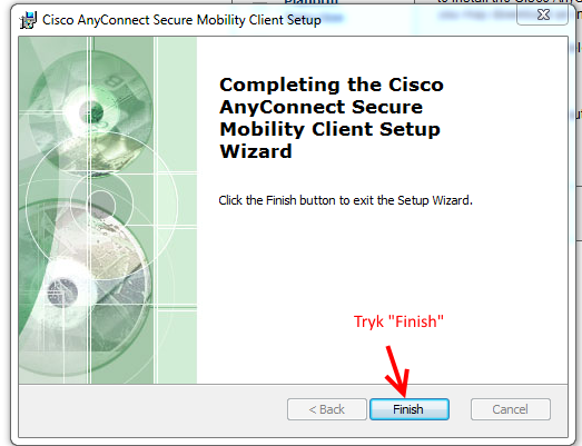Nu vil installation / opdatering af VPN klienten AnyConnect starte automatisk. p>