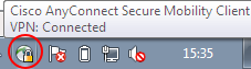 Du vil altid kunne se, om VPN klienten har etableret forbindelse til Uno-X Automat, for når forbindelsen er aktiv, vises der et lille icon med en hængelås i værktøjslinien.